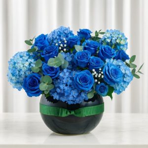 Blue Azure Roses – A Stunning Floral Arrangement with Ivy- Blue Roses online
