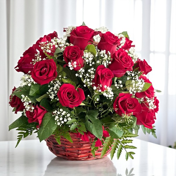 Here are the silky soft velvet roses just for your special day. Adorn your occasions with this grand display of red velvet roses and make everyone relish the moment for a lifetime. tuliptouch.ae is delighted to craft a premium red velvet rose bouquet for our customer to make their event look royal and classy. It is a stunner for any event, especially for Valentine’s Day, a wedding, an anniversary, or a proposal. Look at the bouquet’s arrangement of flowers, which makes it unique from other bouquets. Save these red roses for your home decor, and you will need more of them every day. This bouquet is comprised of 20 lovely red roses with little white ones and green leaves as fillers, put together in a braided basket. It works best for table arrangements and wedding arrangements.